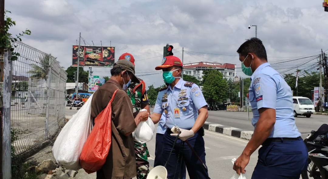 Komandan Skadron Pendidikan Wingdikum 503 ketika memberikan sembako ke pemulung dan warga sekitar.