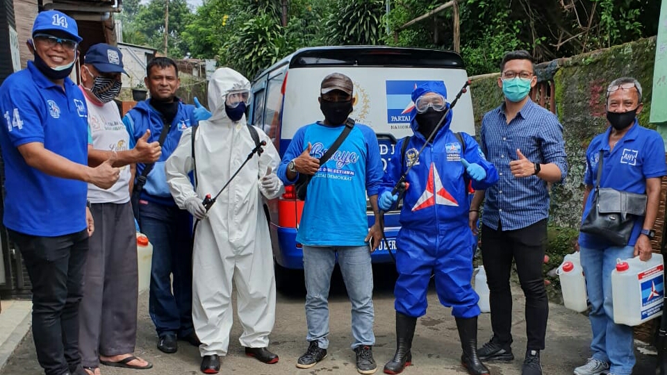 DPC Demokrat Kota Bogor menggelar penyemprotan disinfektan di enam kecamatan.