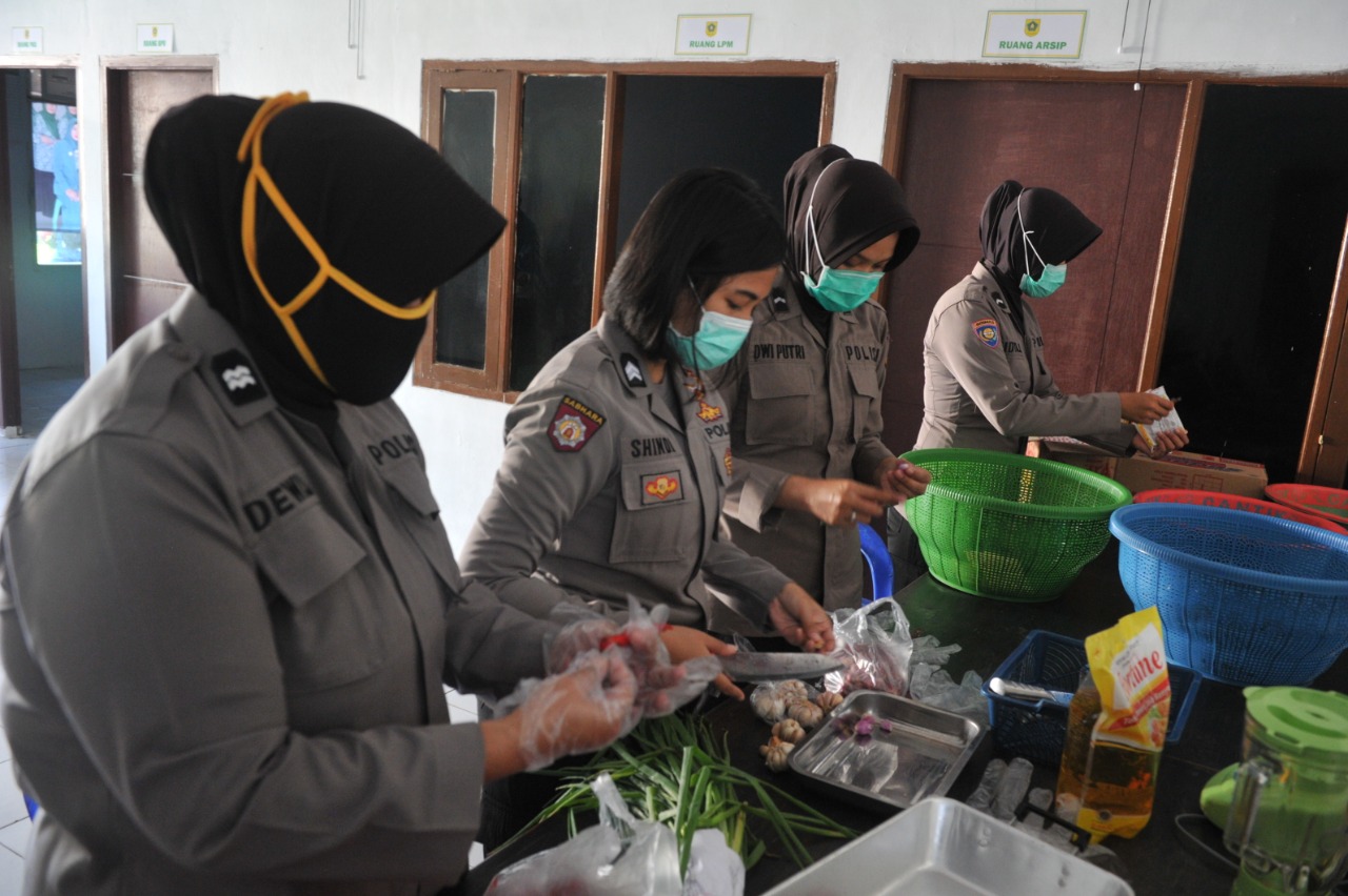 Selain melibatkan TNI, Tagana, para ibu-ibu PKK dan warga masyarakat, Polres Bogor melibatkan regu Polwan untuk mengolah makanan yang akan dibagikan ke masyarakat yang terdampak Covid-19.