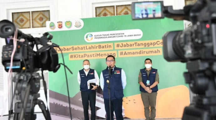Sebelum menggelar konferensi pers, Kang Emil lebih dulu mengikuti video conference rapat terbatas (ratas) evaluasi pelaksanaan PSBB bersama Presiden Republik Indonesia (RI) Joko Widodo.