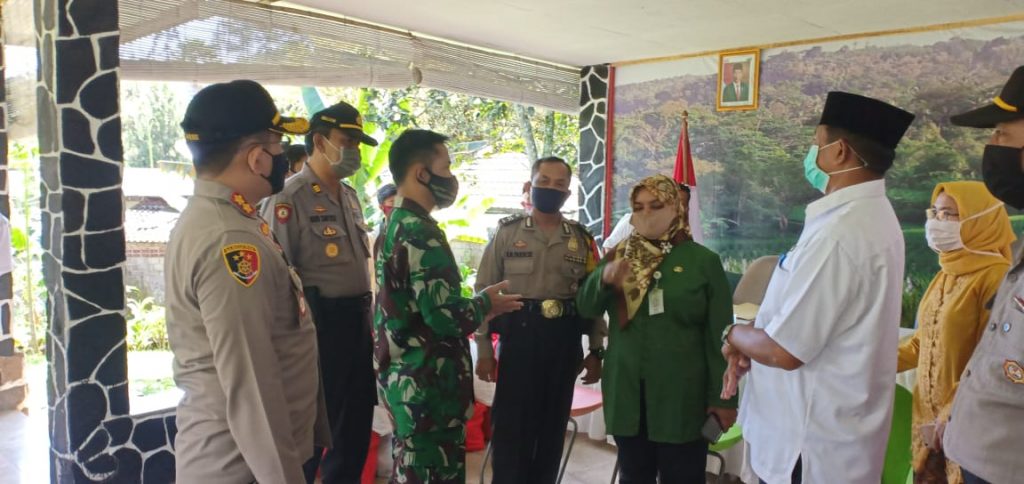 Dandim 0621 bersama Kapolres Bogor melaksanakan kegiatan bantuan kepada warga terdampak Covid-19 di Desa Cipayung Girang.