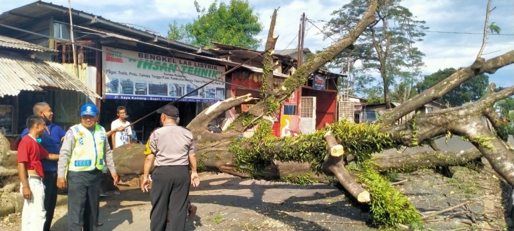 Peristiwa itu terjadi sekitar pukul 14.30 WIB. Lalu lintas di sekitar lokasi tersendat akibat batang pohon yang menutup akses jalan menuju ke Kota Bogor.
