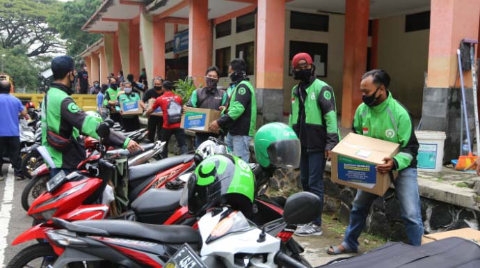 Sebanyak 23 driver ojek online diterjunkan untuk mendistribusikan bantuan kepada masyarakat non-DTKS. Bantuan dari Pemerintah Provinsi (Pemprov) Jawa Barat itu kemudian dikirim ke wilayah Kelurahan Tegal Gundil, Kecamatan Bogor Utara. Dimana wilayah itu masih menjadi zona merah penyebaran Covid-19.