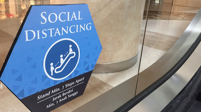 Ada pembatasan atau penjarakan pengunjung yang menggunakan tangga berjalan atau ekskalator. Jaraknya yaitu minimal tiga anak tangga.