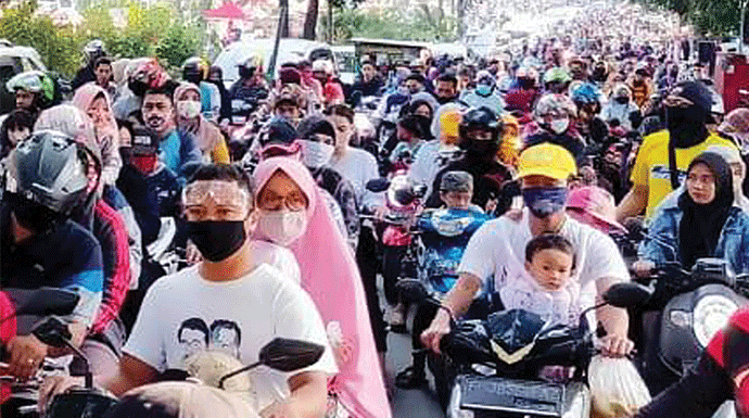 Keramaian itu pun cukup riskan. Bisa jadi, Stadion Pakansari menjadi klaster berikutnya. Pasalnya, jumlah warga yang berkumpul benar-benar membeludak.