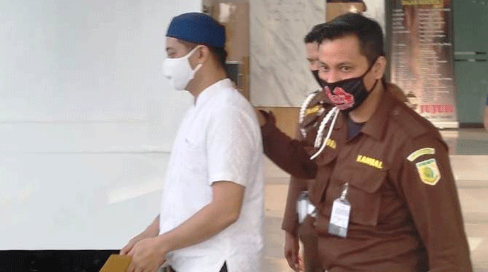 Tersangka kasus dugaan korupsi yang bermula dari OTT Sekretaris DPKPP saat digelandang petugas Kejari, Rabu (1/7/2020).