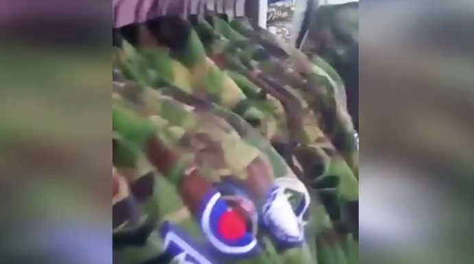 Dalam video tersebut tampak jejeran baju tentara yang sedang digantung di sebuah tempat laundry, dikuti suara seorang pria yang mengungkap seragam itu punya tentara China.