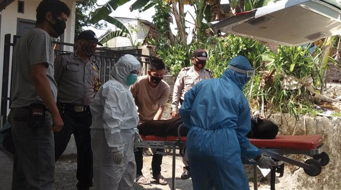 Menghindari hal-hal yang tak diinginkan, pria tersebut dievakuasi petugas Puskemas Sirnagalih sesuai protokol kesehatan Covid-19 dengan menggunakan alat pelindung diri (APD) lengkap.