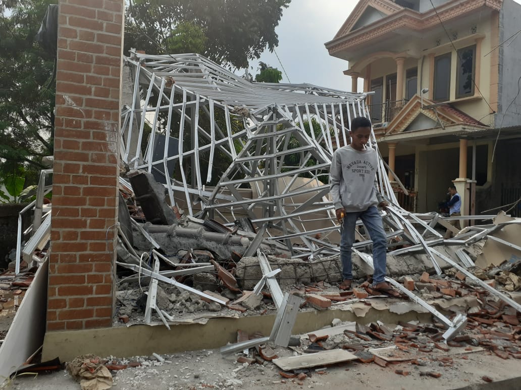 “Bangunan ini digunain untuk pengajian ibu-ibu, dan anak-anak dan salat Maghrib, baru beres dikerjakan tiga bulan, ambruk,” katanya.
