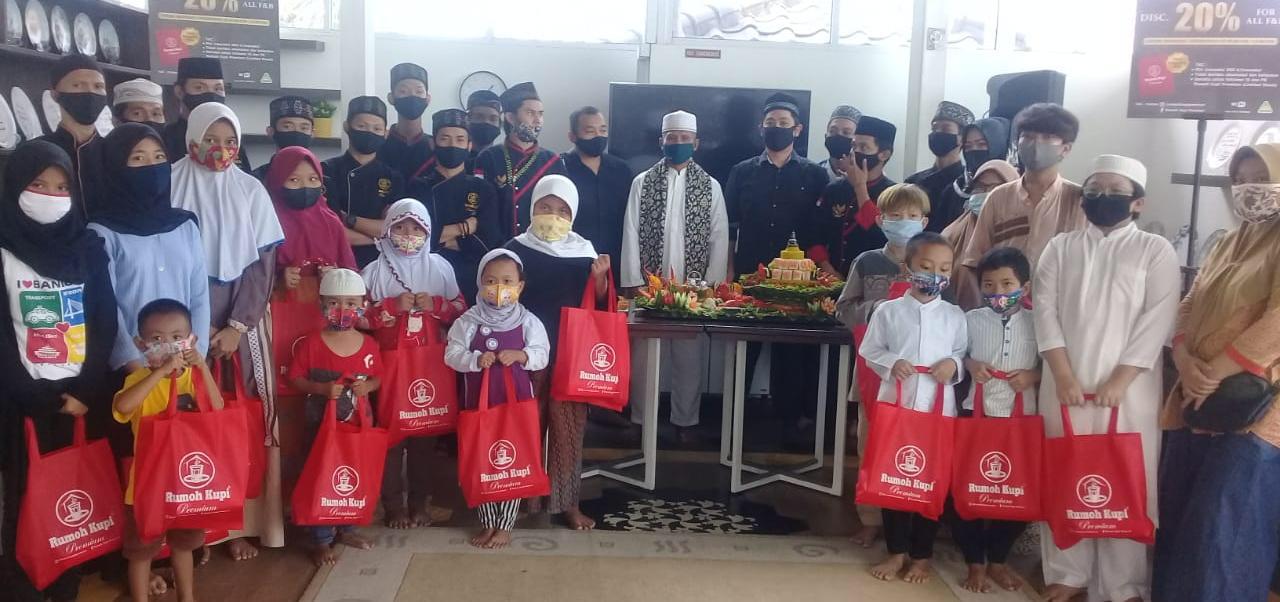 BOGOR-RADAR BOGOR, Restoran Rumoh Kupi Premium yang berlokasi di Jalan Jenderal Ahmad Yani No. 58, Kelurahan Tanah Sareal, Kecamatan Tanah Sareal, menyelenggarakan tasyakuran serta membagikan bingkisan dan santunan terhadap puluhan anak yatim dan janda lansia, yang terdampak pandemi Covid-19 pada Sabtu (26/9/2020).