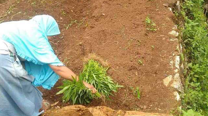 Pemdes Gunungputri memberdayakan masyarakat terdampak menjadi seorang petani.