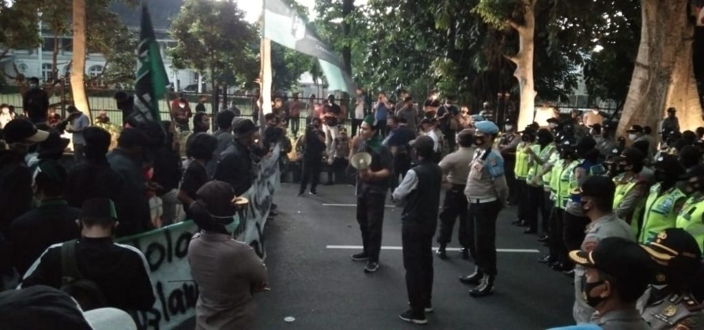 Demo mahasiswa di depan Istana Bogor, Kamis (15/10/2020).