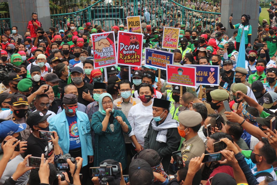 Saat ini Bupati Bogor, Ade Yasin sendiri sudah bersurat ke Presiden Joko Widodo menyampaikan tuntutan para buruh di Kabupaten Bogor. “Kami sadar kewenangan UU cipta kerja adalah DPR RI dan draf sudah di serahkan ke presiden,” katanya.