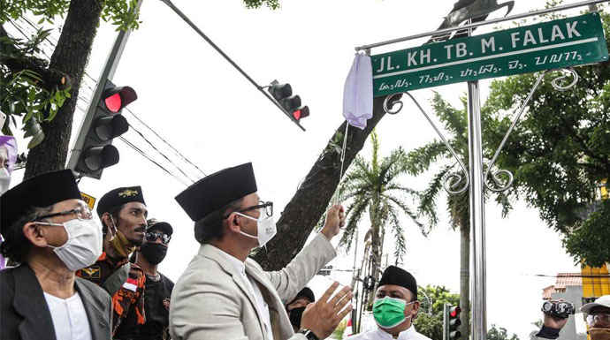 Tak ketinggalan, ia juga membuka kain penutup papan nama jalan Tubagus Muhammad Falak, yang berlokasi di pertigaan lampu merah Laladon itu.