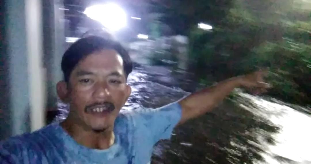 Warga menunjukkan banjir di wilayah Budi Agung.