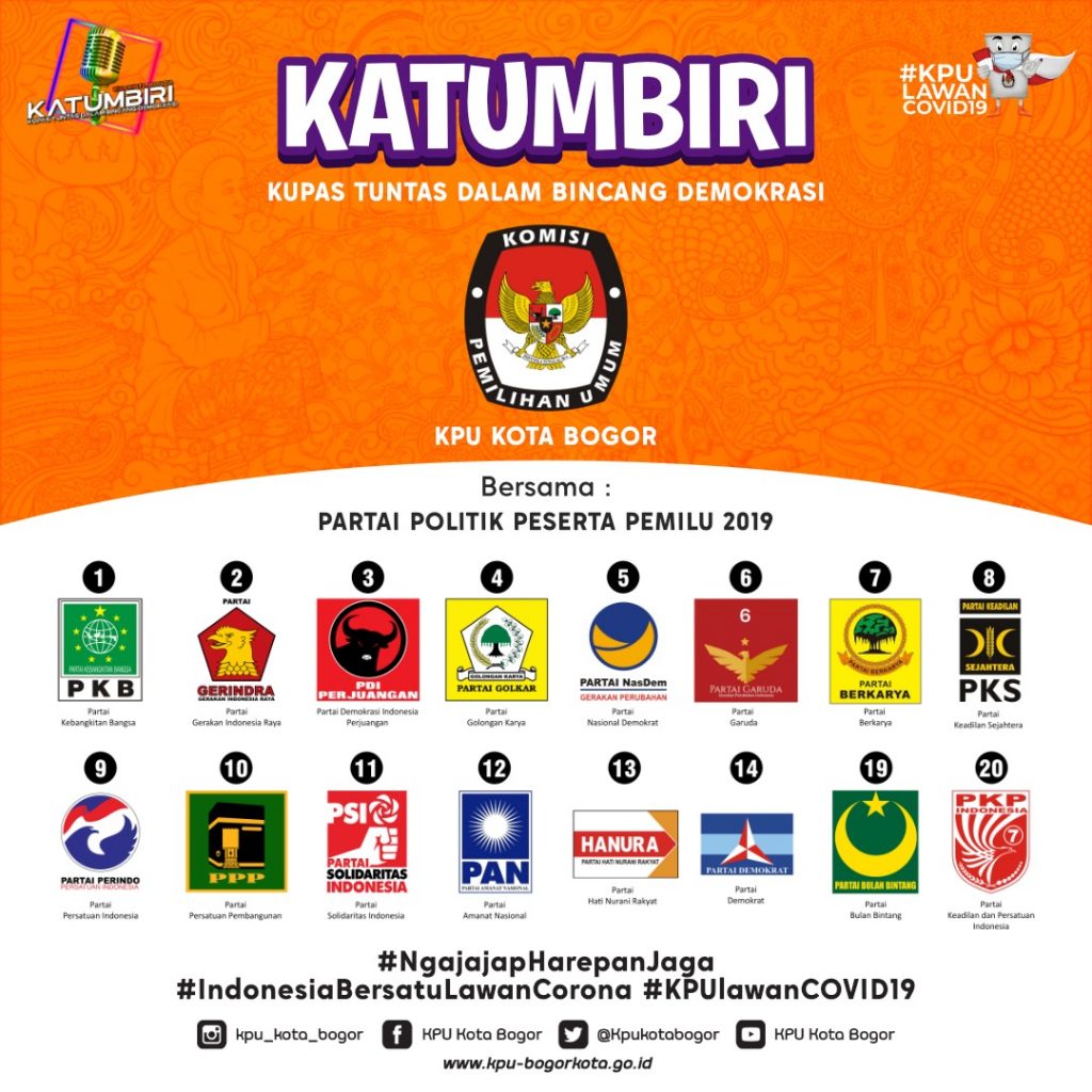 Acara ini dikemas dalam bentuk talkshow kepada 16 parpol peserta pemilu 2019 di Kota Bogor. “Hasil KATUMBIRI akan kami sebar melalui kanal youtube, uncal TV, IG, serta FB KPU Kota Bogor,” terangnya.
