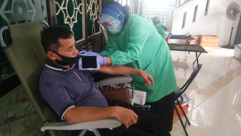 CIOMAS-RADAR BOGOR, DKM Al Amaliyah RW 12 dan 14 Taman Pagelaran, Kelurahan Padasuka, Kecamatan Ciomas Kabupaten Bogor, untuk kedua kalinya berkerjasama dengan warga, juga PMI Cabang Kota Bogor, melakukan aksi bakti sosial donor darah peduli anak Thalassamia.