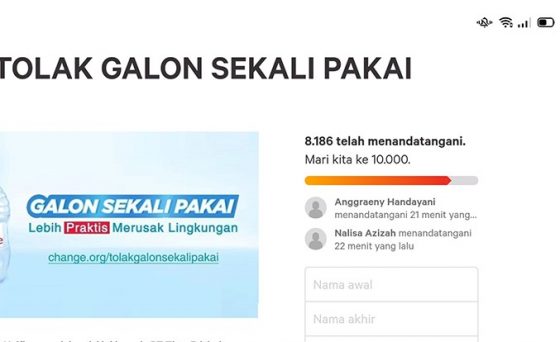 ”Karena itulah kami membuat petisi. Kami ingin mendorong agar menarik produk galon sekali pakai ini,” tambah Elhan.