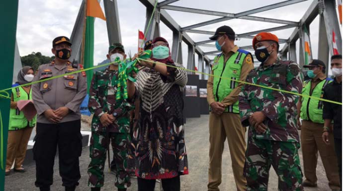 TANJUNGSARI-RADAR BOGOR, Bupati Bogor, Ade Yasin meresmikan Jembatan Cimapag di Desa Buanajaya, Kecamatan Tanjungsari, Senin (28/12/2020). Dengan selesainya pembangunan jembatan ini diharapkan dapat meningkatkan produktivitas warga setempat.