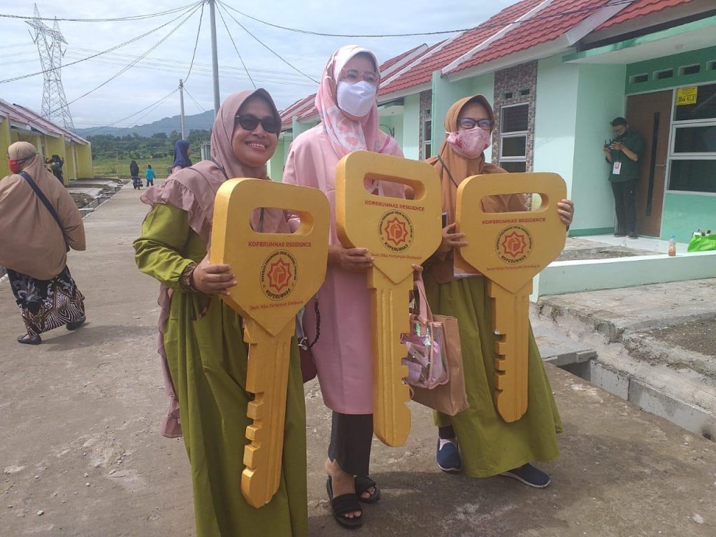 JONGGOL – RADAR BOGOR, Senyum sumringah menghiasi wajah 50 anggota Koperasi Konsumen Perumahan Nasional Syariah (Koperumnas) saat menerima kunci rumah di Singasari Residence Jonggol.